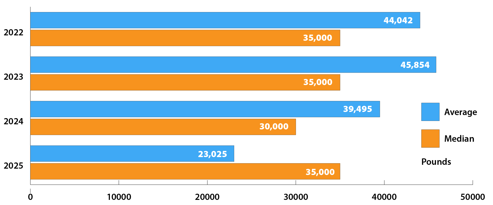 | 2025 | 48,027 | 26,000 | 650,000 |