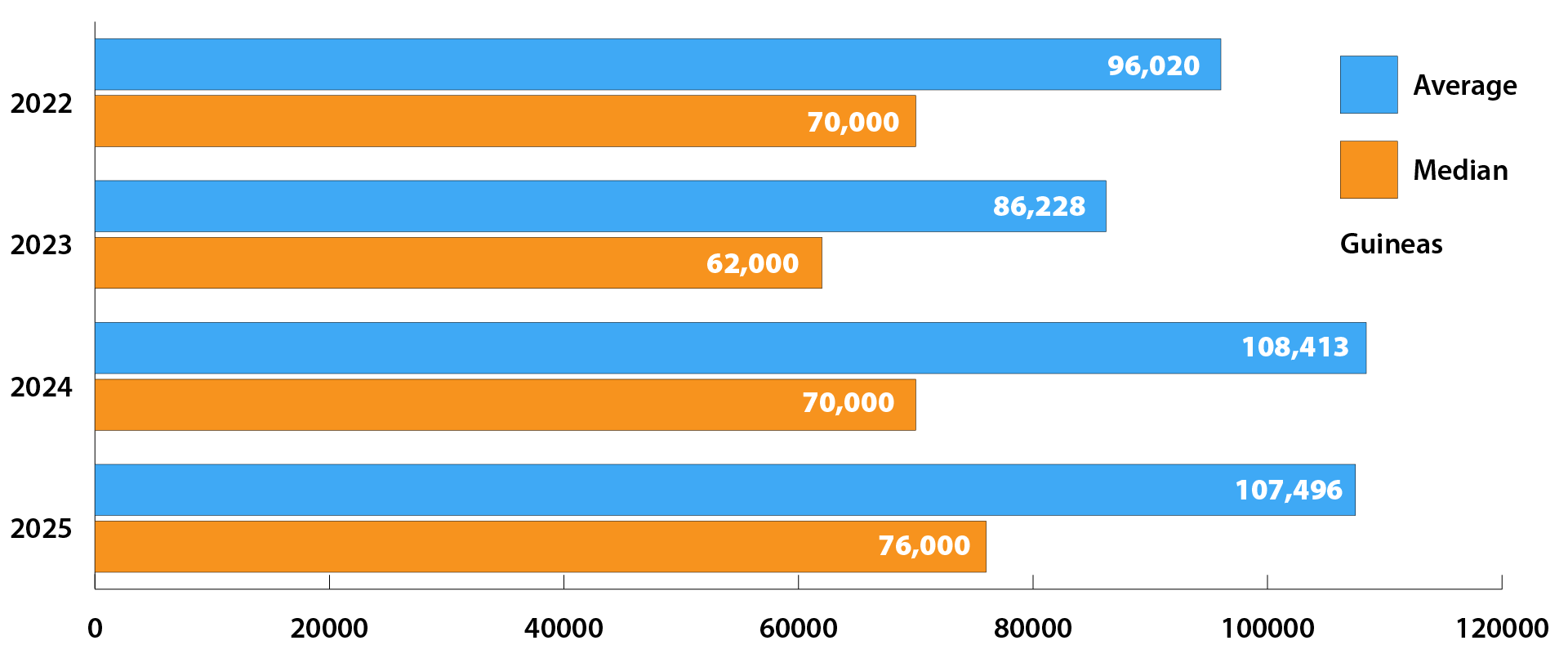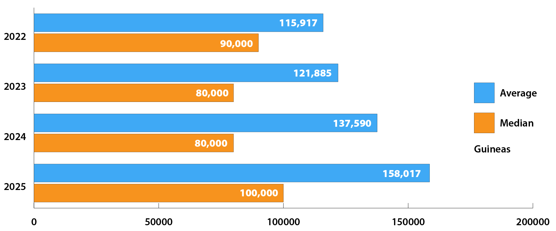| Year | Avarage | Median | TOP LOT (GNS) |